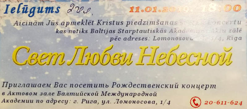 Концерт пройдёт в актовом зале Балтийской Международной Академии по адресу: г. Рига, ул. Ломоносова, 1/4.